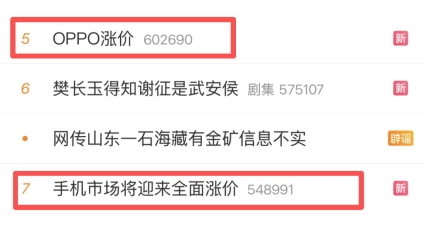 3月10日,OPPO通过官方商城发布调价公告,称自3月16日起对部分已发售机型调整售价。记者注意到,当日,“OPPO涨价”“手机市场将迎来全面涨价”等相关话题冲上微博热搜,引起广泛关注。