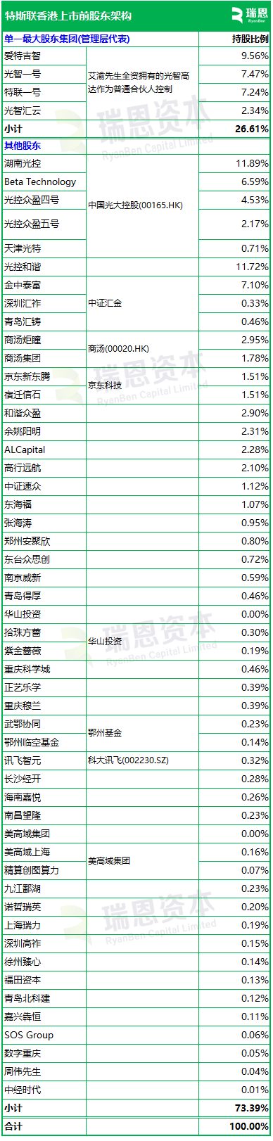 招股书显示,特斯联在上市前的股东架构中,