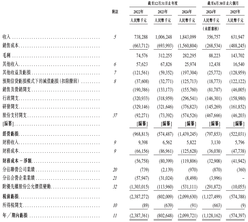 招股书显示,在过去的2022年、2023年、2024年和2025年前六个月,特斯联的营业收入分别为人民币7.38亿、10.06亿、18.43亿和6.32元,相应期间的净亏损分别为人民币23.87亿、8.03亿、21.00亿和5.74亿元,相应期间的经调整净亏损分别为人民币9.83亿、6.00亿、9.73亿和5.00亿元。